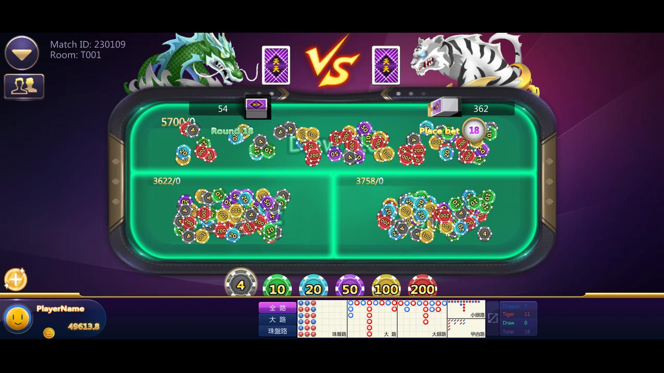顺势逻辑:刚出龙连三,就轻注续龙,虎同理。