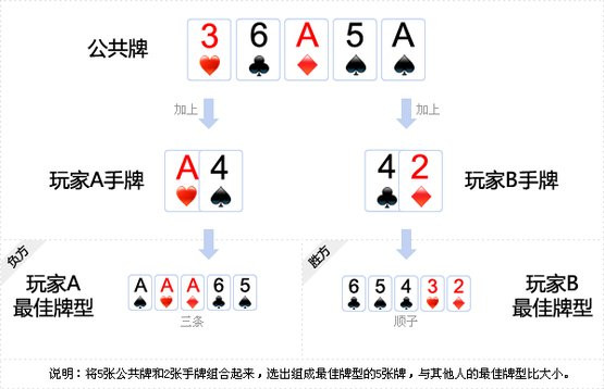 游戏开始时,每名玩家会获得两张面朝下的“底牌”。接下来,将依次在桌面中央发放五张公共牌,这些牌将是所有玩家共同使用的。